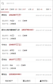 客戶信息審核:置業(yè)顧問(wèn)在微信端接收到推送過(guò)來(lái)的客戶數(shù)據(jù),可根據(jù)設(shè)置的模式獲得客戶數(shù)據(jù),也可進(jìn)行搶單,將客戶變?yōu)樽约旱母M(jìn)客戶,進(jìn)行客戶信息的初步審核。